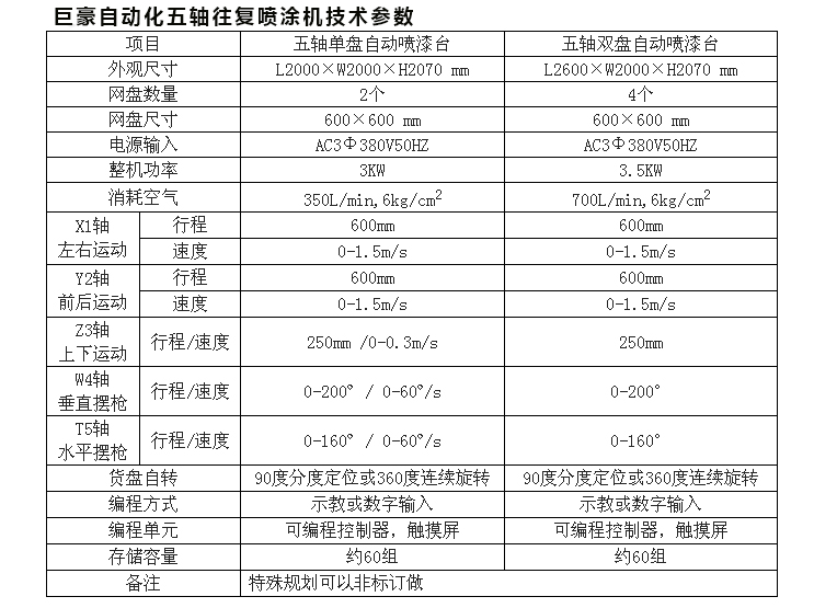 五軸雙頭四盤往復噴涂機(非標定制)